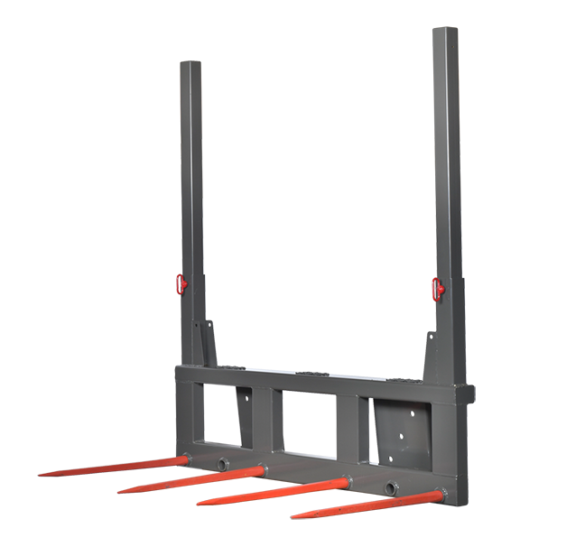 This bale handler allows you to handle 2 round bales or stack square bales 3 high.