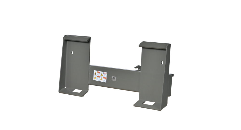 Built to fit onto a skid steer universal quick tach with a 2″ Reese hitch receiver welded on.